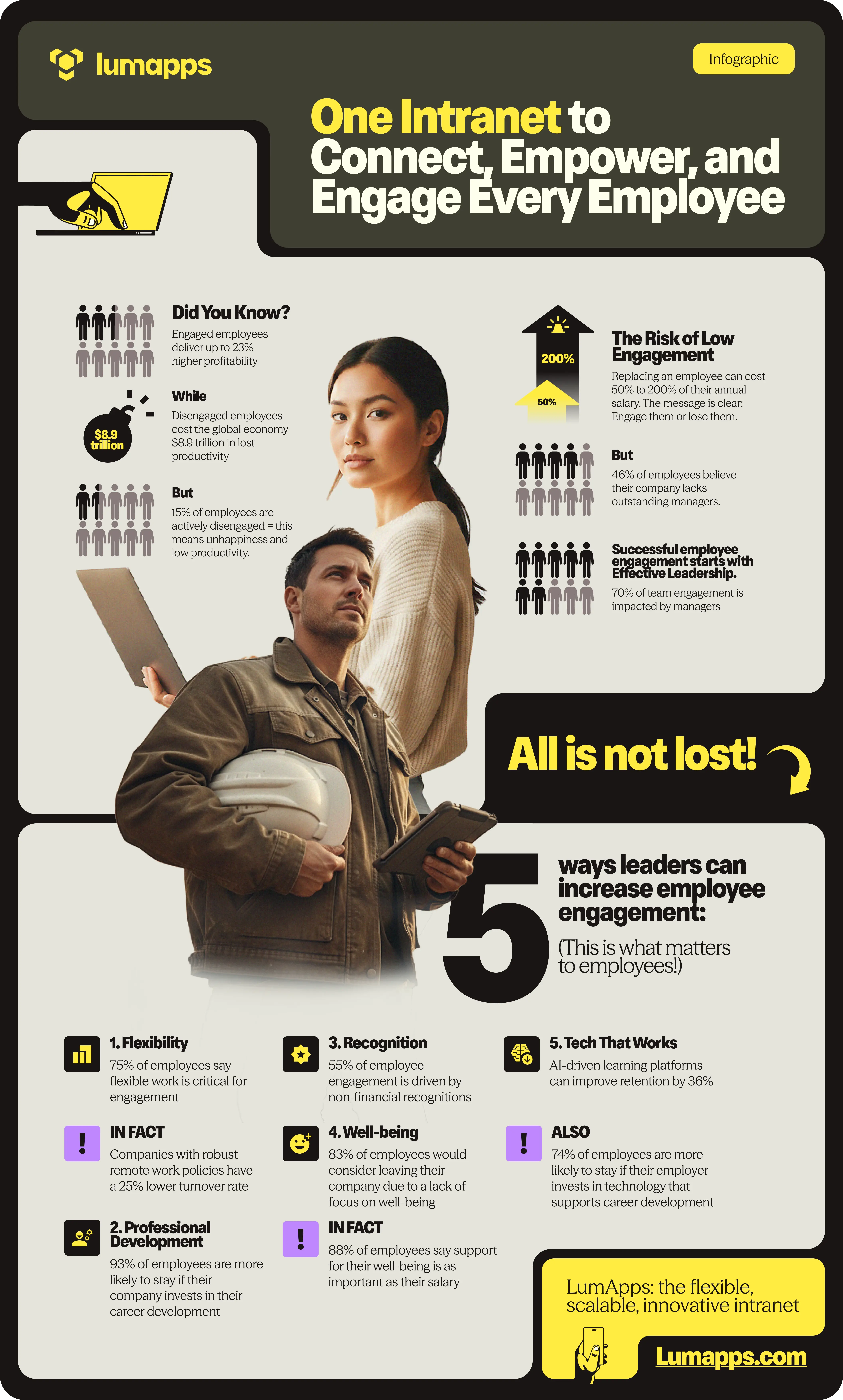 We'll explore the current state of engagement, the key drivers shaping it, and actionable strategies for a brighter way to work. Plus, we included a helpful infographic with more information about the impact of employee engagement.
