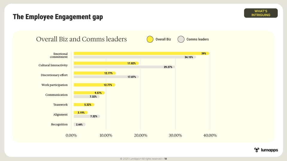 Communication leaders, however, often sit closer to the ground level. They see engagement differently. They hear the questions employees ask. They sense the mood in the virtual town halls. They know that engagement isn't just a lever you pull to get more work out of people.